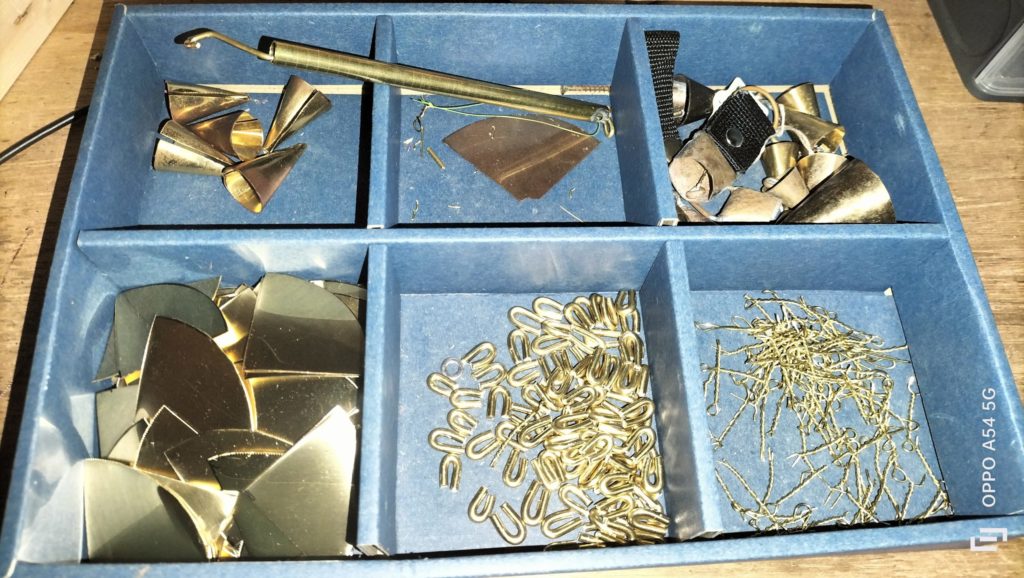 鐘ストラップ 2025年11月9日 最終更新日時 : 2025年11月9日 koubou-zeru 鐘ストラップ製作の下準備パーツの作成です。本体パーツの真鍮製の板をカットします。おもりパーツの真鍮製ワイヤー2種類ををカットして加工します。まだまだ部品作らなければいけません。持ち手部分ですね。それが終わったらフック用の革をカットしてパーツはそろいます。次回は加工編ですね。 \ 最新情報をチェック /
